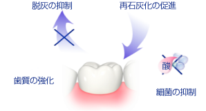CMなどで「フッ素」という言葉を耳にしたことがあると思いますが、フッ素にはどのような効果があるのか知っている方は少ないと思います。フッ素とは、歯を形作るミネラルを溶かす脱灰を抑制し、ミネラルが取り込まれる再石灰化を促進し、更には細菌を抑制してくれる効果があります。このような様々な働きによって、むし歯予防において非常に高い効果を発揮してくれるのがフッ素なのです。また、フッ素塩分は食品中にも含まれており、誤った使い方をすると身体に害を与える場合もありますが、正しく使用すると特に問題はありません。担当の歯科衛生士に使用方法や効果を指導してもらい正しくフッ素を使用しましょう。