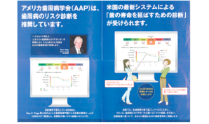 定期的な管理とは自身のリスク(かかりやすさ)を知った上で、セルフケアとプロフェッショナルケア(歯科医院で行うバイオフィルムの除去)を行うことです。日本人の多くの方は、健康な状態で歯科医院にメインテナンス目的で通う習慣があまりないため、悪くなってから歯科医院に通い既に手遅れな歯周病の患者さんが多いのです。そこで当院では、Roy C. Page(元ワシントン大学歯学部教授)をはじめとするアメリカの歯周病専門医グループと、PREVISER社が10年かけて開発した、歯周病のリスク評価を行なう「OHI‐S」というソフトウェアを使用し、蓄積され続ける膨大な疫学データをもとに構築した、世界基準のリスク評価を提供し、そのリスクに合わせたメインテナンス間隔を推奨しています。