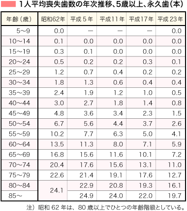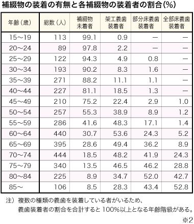 平成23年の厚生労働省による歯科疾患実態調査によると、80歳での日本人の平均残存歯数は12.2本。予防先進国のスウェーデンでは25本と言われています。また、80歳以上の総義歯装着率は42.7%とされており、80歳以上のふたりにひとりは総入れ歯とも言われている現状なのです。※2